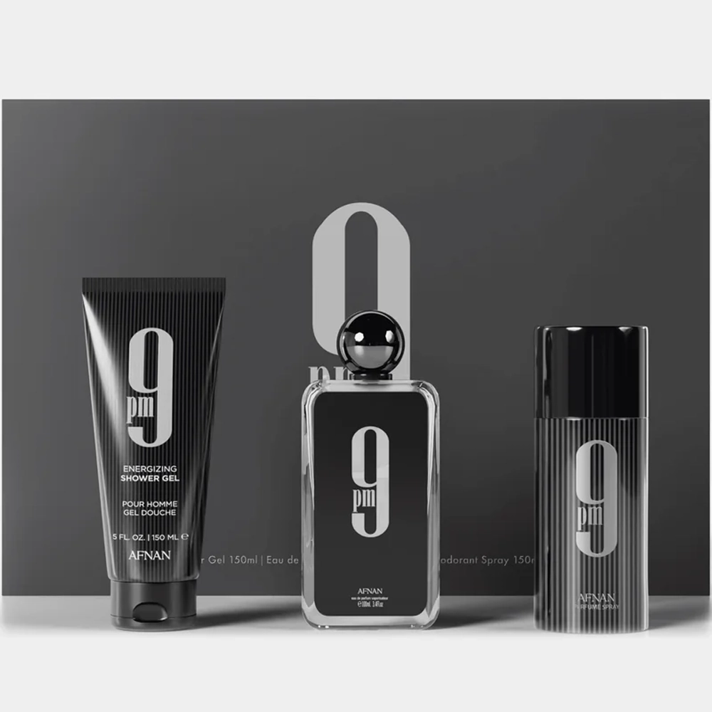 Own the night with the Afnan 9Pm Homme Perfume Gift Set For Unisex. This powerful collection is centered around the iconic and addictive 9PM fragrance DNA, known for its bold blend of sweet vanilla, amber, and woody accords. The set offers a versatile range of intense, long-lasting scents that evolve from fresh openings to deep, sensual bases, creating an aura of undeniable confidence and allure. Perfect for evening wear and special occasions, each fragrance in this set is crafted to deliver exceptional performance and sillage. Housed in an elegant presentation case, it is the ultimate gift for the individual who commands attention and celebrates their unique style. For a signature scent experience that is both rebellious and refined, order today from Alkhaliq.pk. We deliver quickly and reliably to all cities and regions across Pakistan.